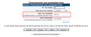 📌 O sistema vai mostrar a taxa média mensal de juros daquele período.